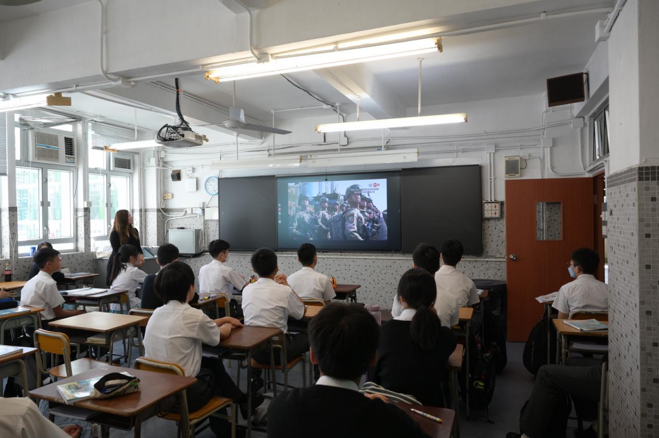 學生觀賞抗戰勝利80周年閱兵