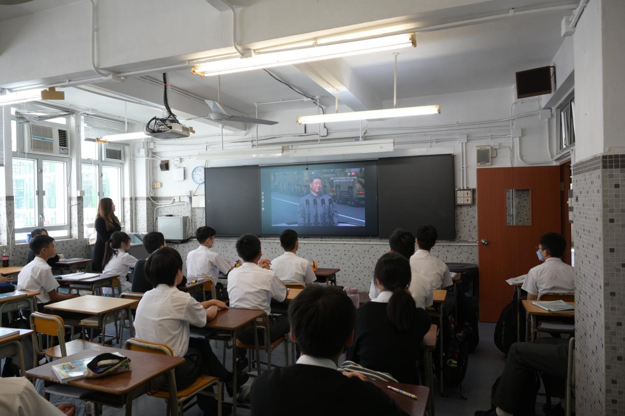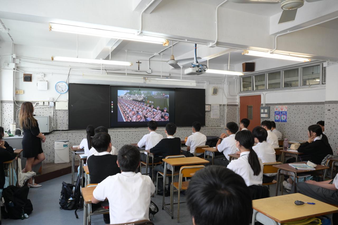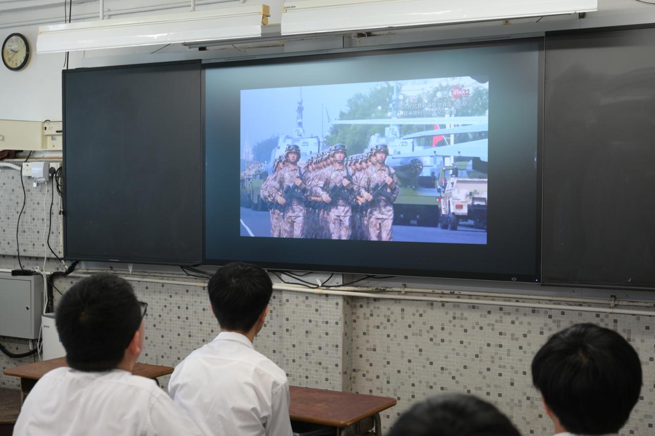 學生觀賞抗戰勝利80周年閱兵