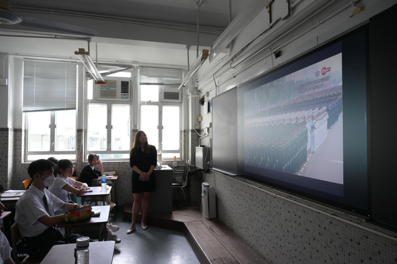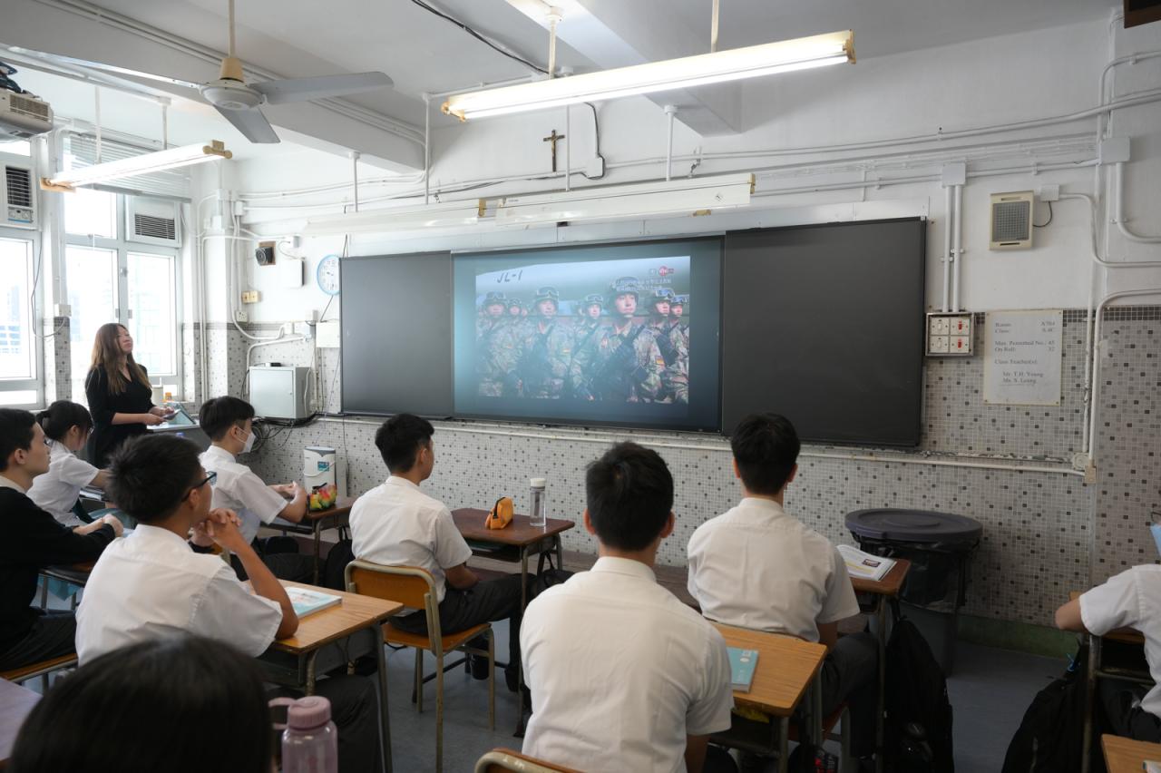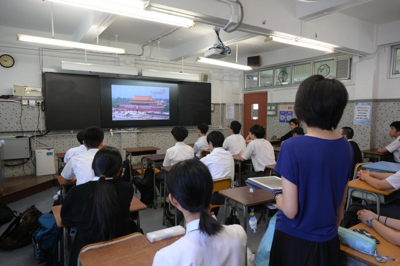 學生觀賞抗戰勝利80周年閱兵